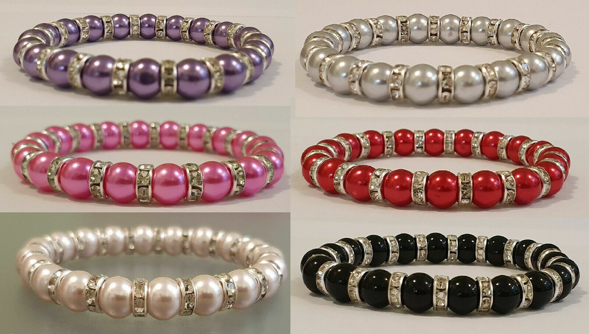 Elastic Glass Pearl Diamante Rondelle Bead Bracelet 12 Colours 8mm New Ebay